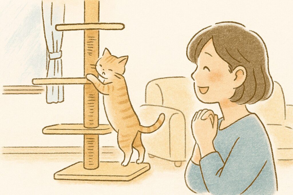 インテリアの工夫は「高い場所を減らす」ことではなく「安心できる場所を増やす」こと。 愛猫が無理なく過ごせる環境を整えることで、暮らしの質と健康寿命は大きく変わります。 「ここなら安心だね」と声をかけるだけで、愛猫の心はじんわり温かく満たされます。