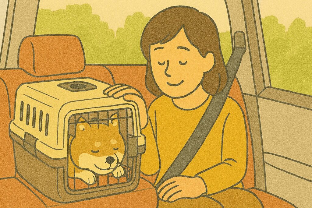 移動中に安心できる「自分の場所」としてクレートを認識させることが重要です。 - 健康チェック